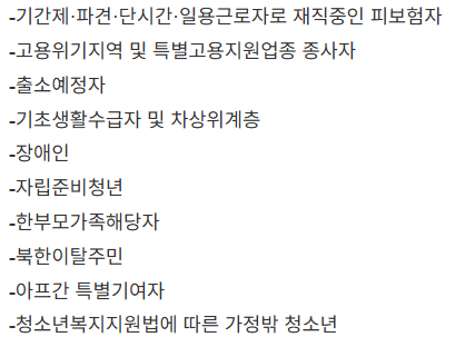 300~500만원이 지원되고, 단, 300만원을 모두 사용 후에 해당 되는 인원들에 한해서 200만원이 추가 지급됩니다. 추가 200만원 지원 대상은 아래와 같습니다. 추가 지원 신청은 대상자임을 확인할 수 있는 서류를 준비하셔서 고용센터 방문 신청하셔야 합니다.