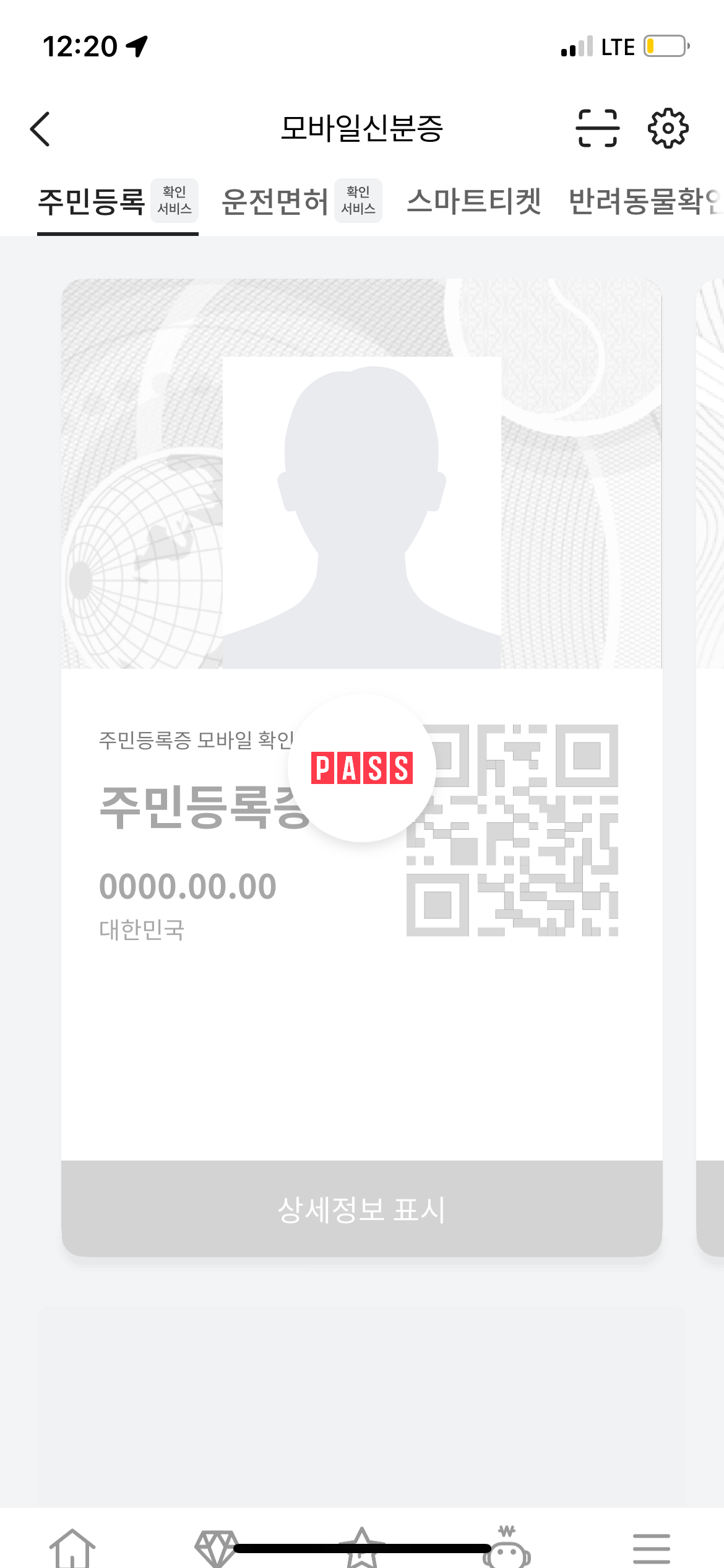 그리고서 다시 모바일 신분증 앱으로 돌아와