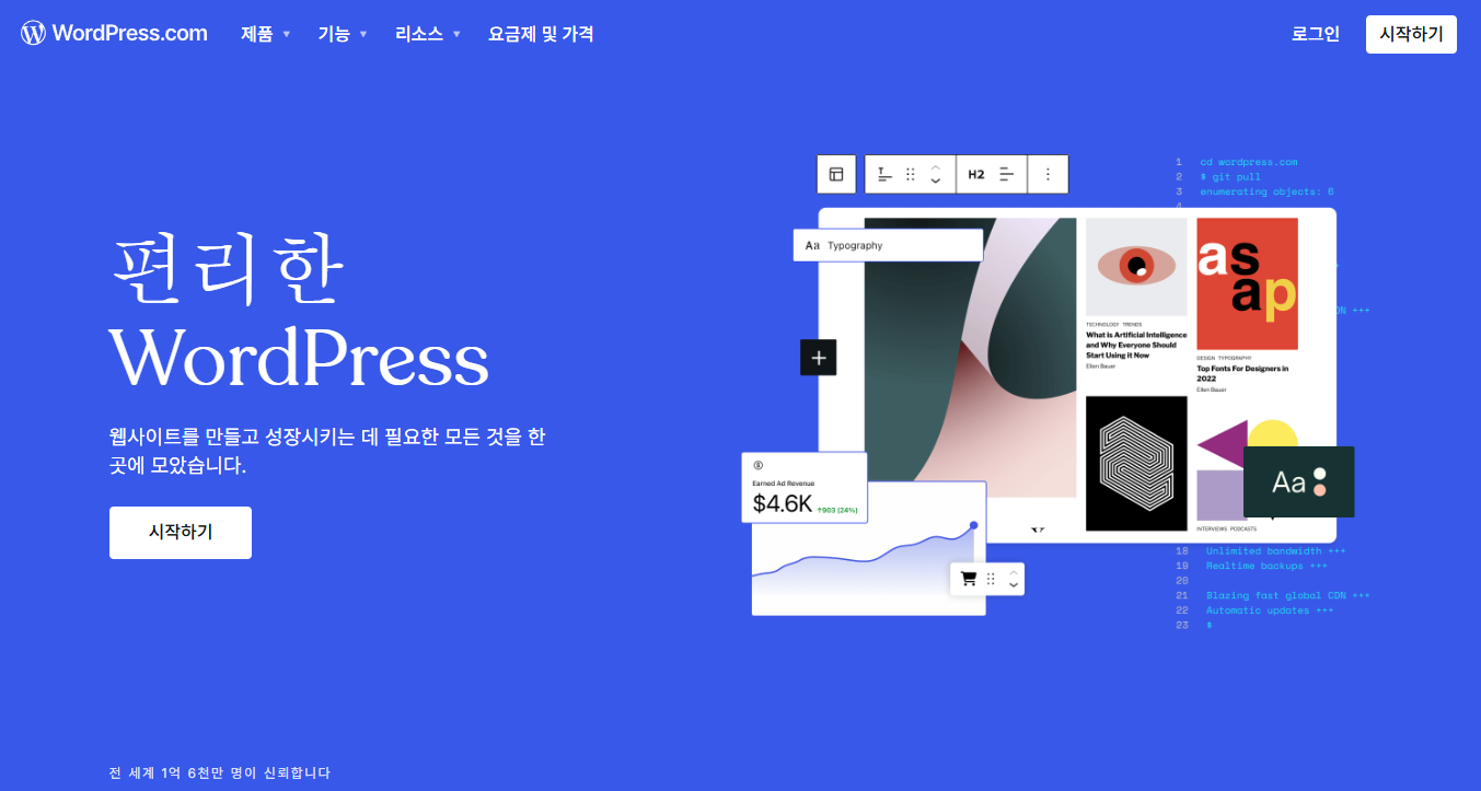 - 광고, 플러그인, 테마 선택 등 모든 면에서 자유롭습니다.