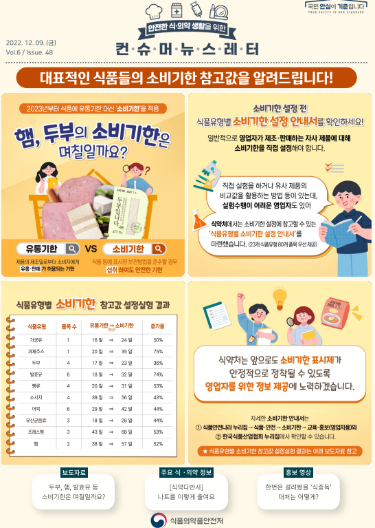 ※소비기한 참고값은 식약처가 품목별로 소비기한 설정 실험을 수행해 제시한 잠정 소비기한입니다.