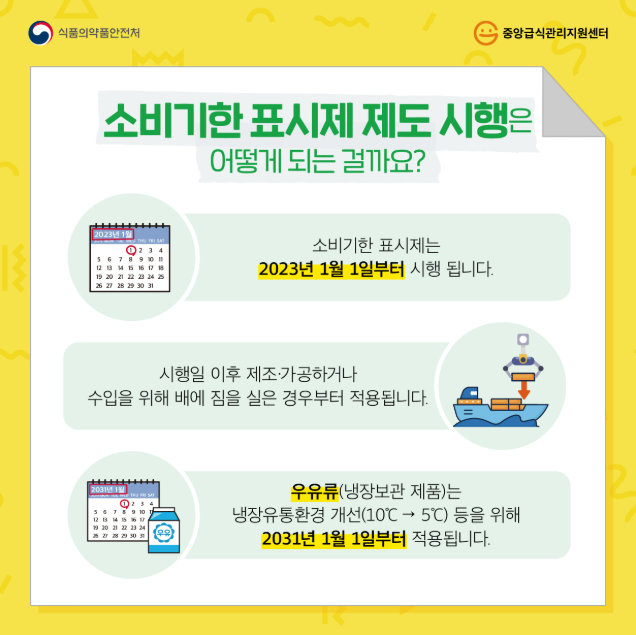 2023년부터 식품 표시제도가 개정되면서 소비기한 표시제를 점차 확대 도입 중입니다.